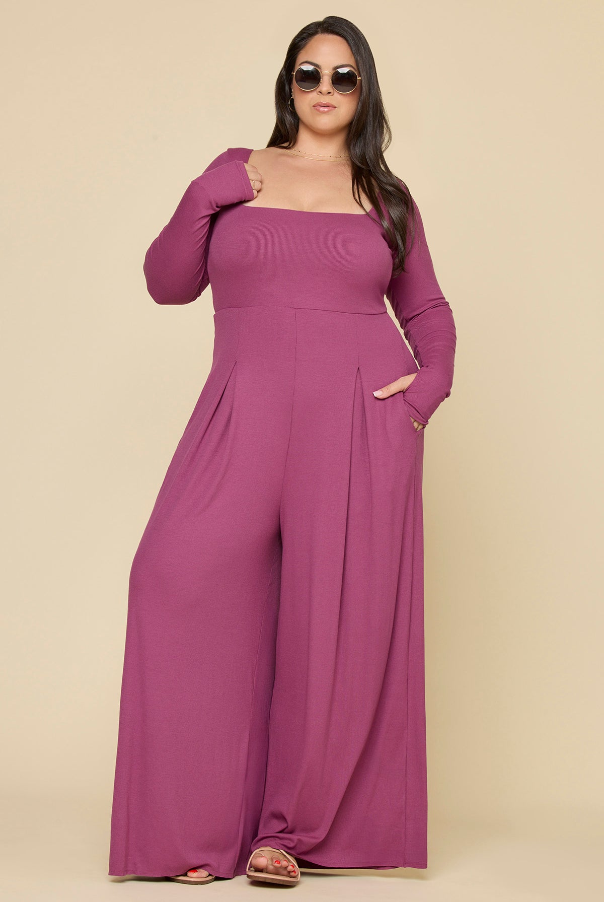 Go With The Flow Long Sleeve Jumpsuit - Raspberry