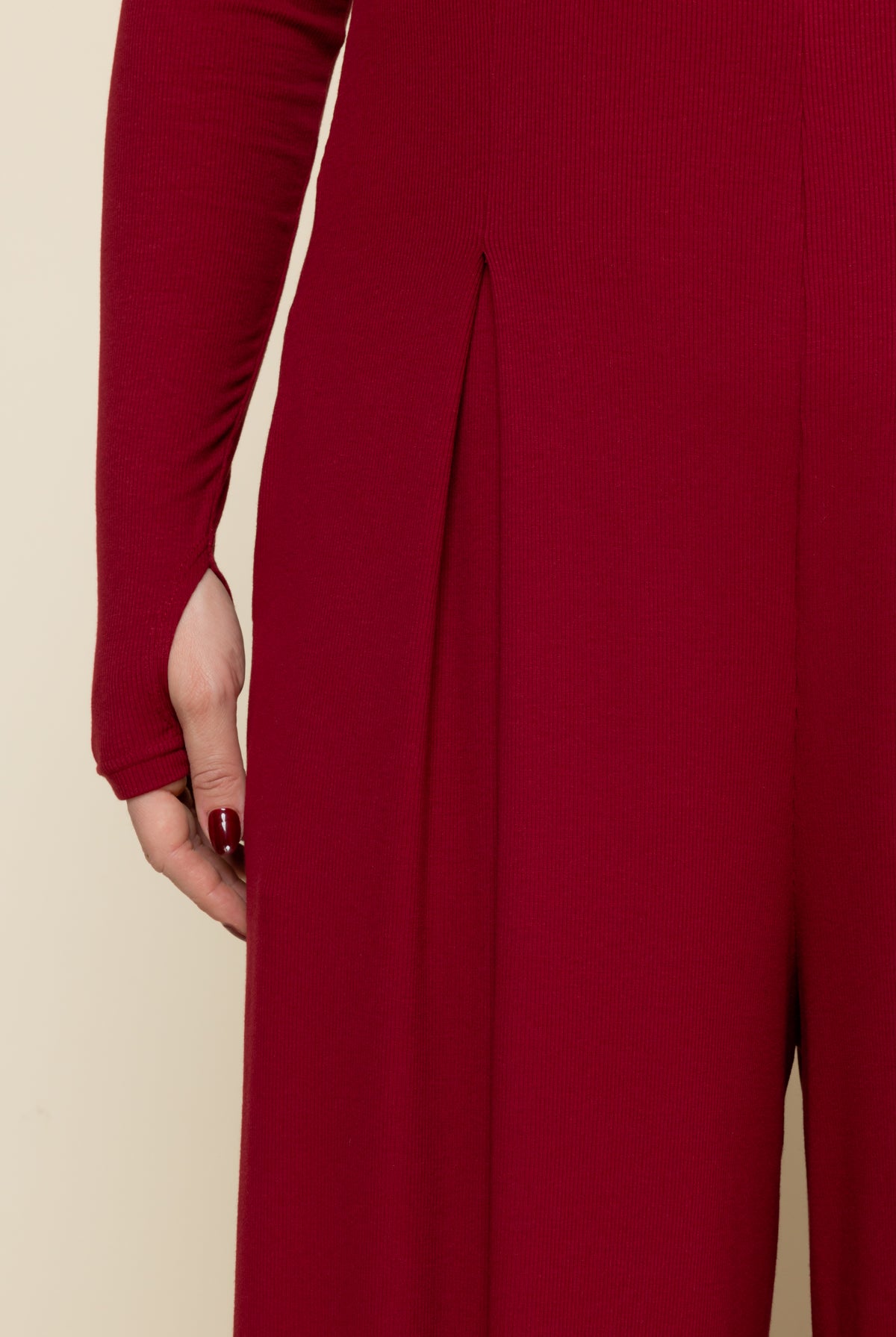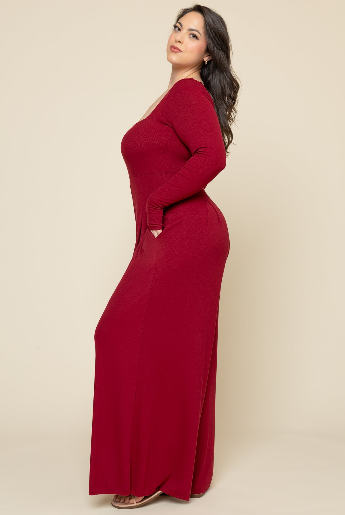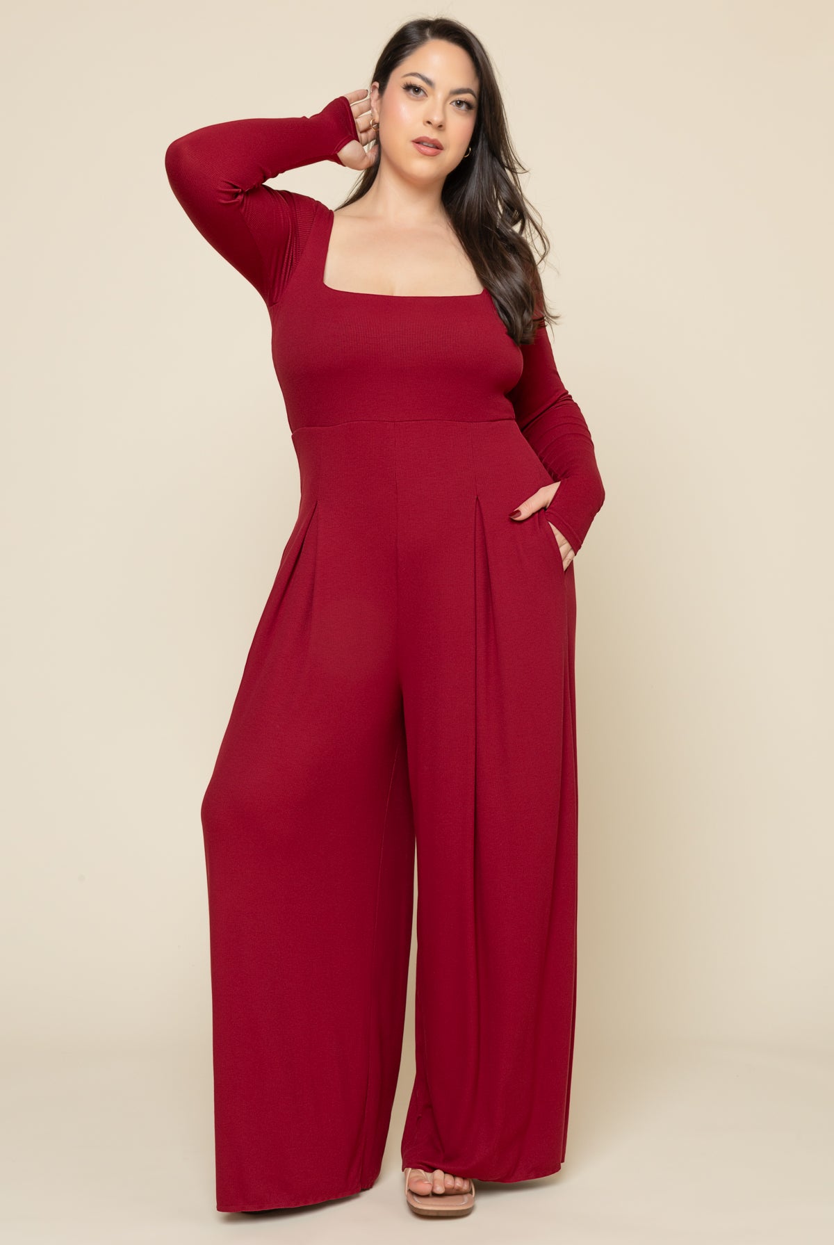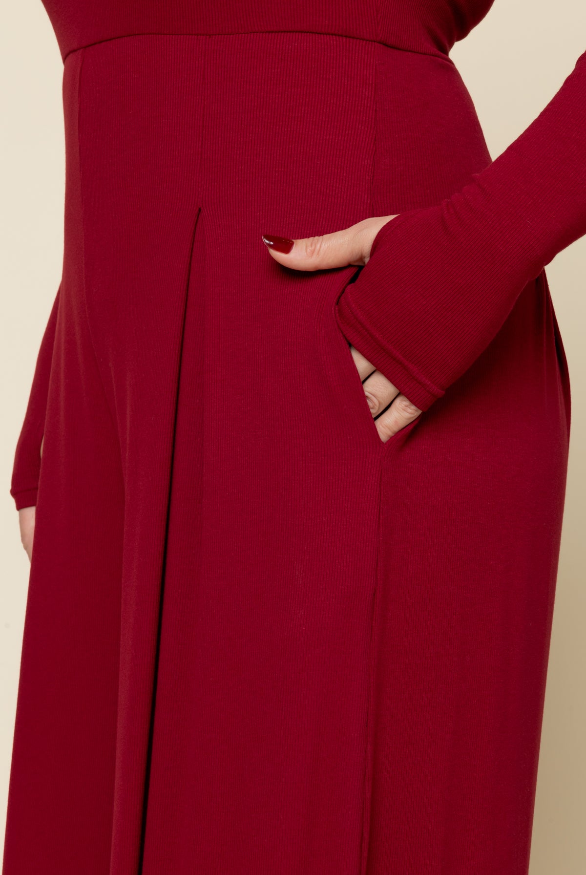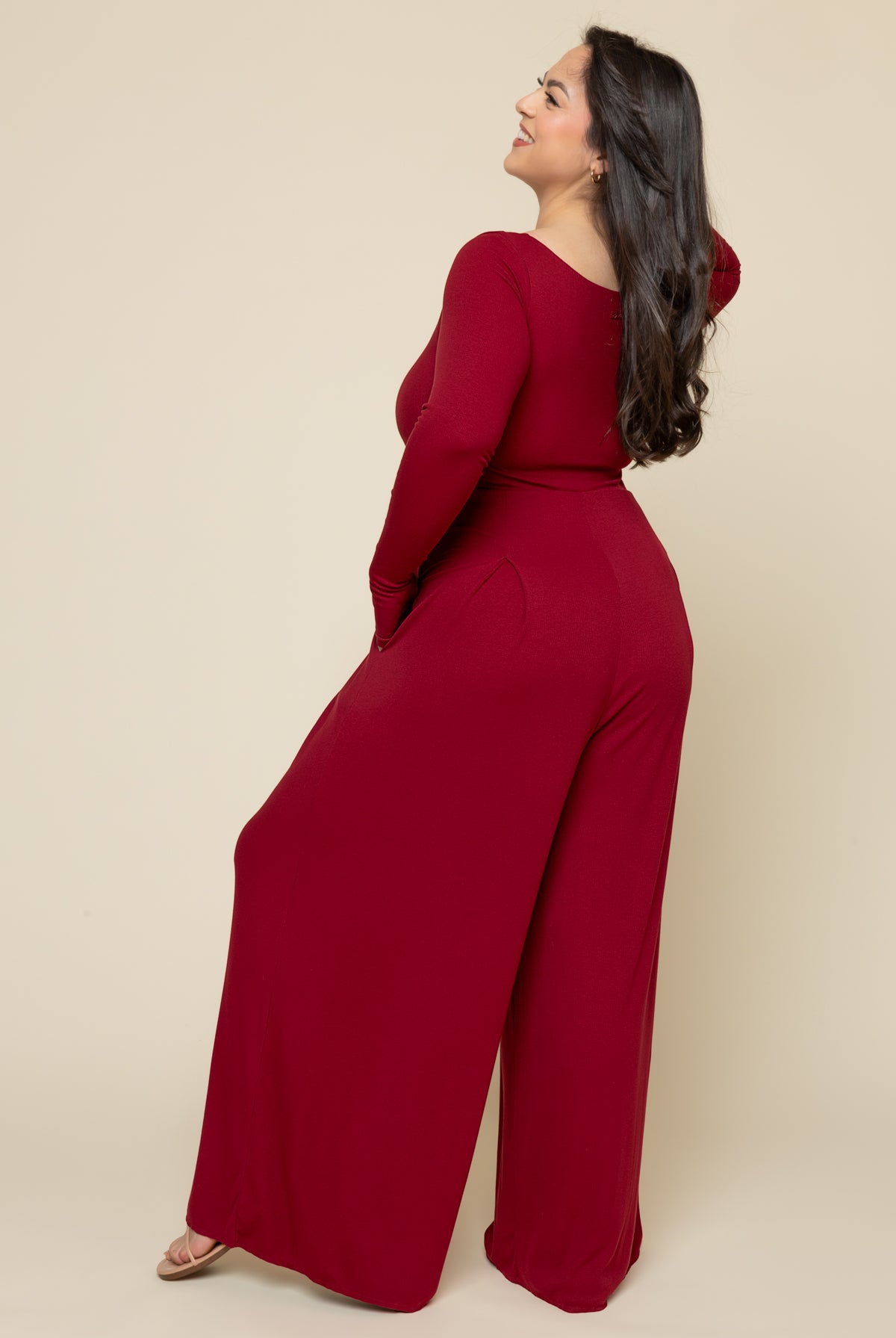 Go With The Flow Long Sleeve Jumpsuit - Deep Cherry
