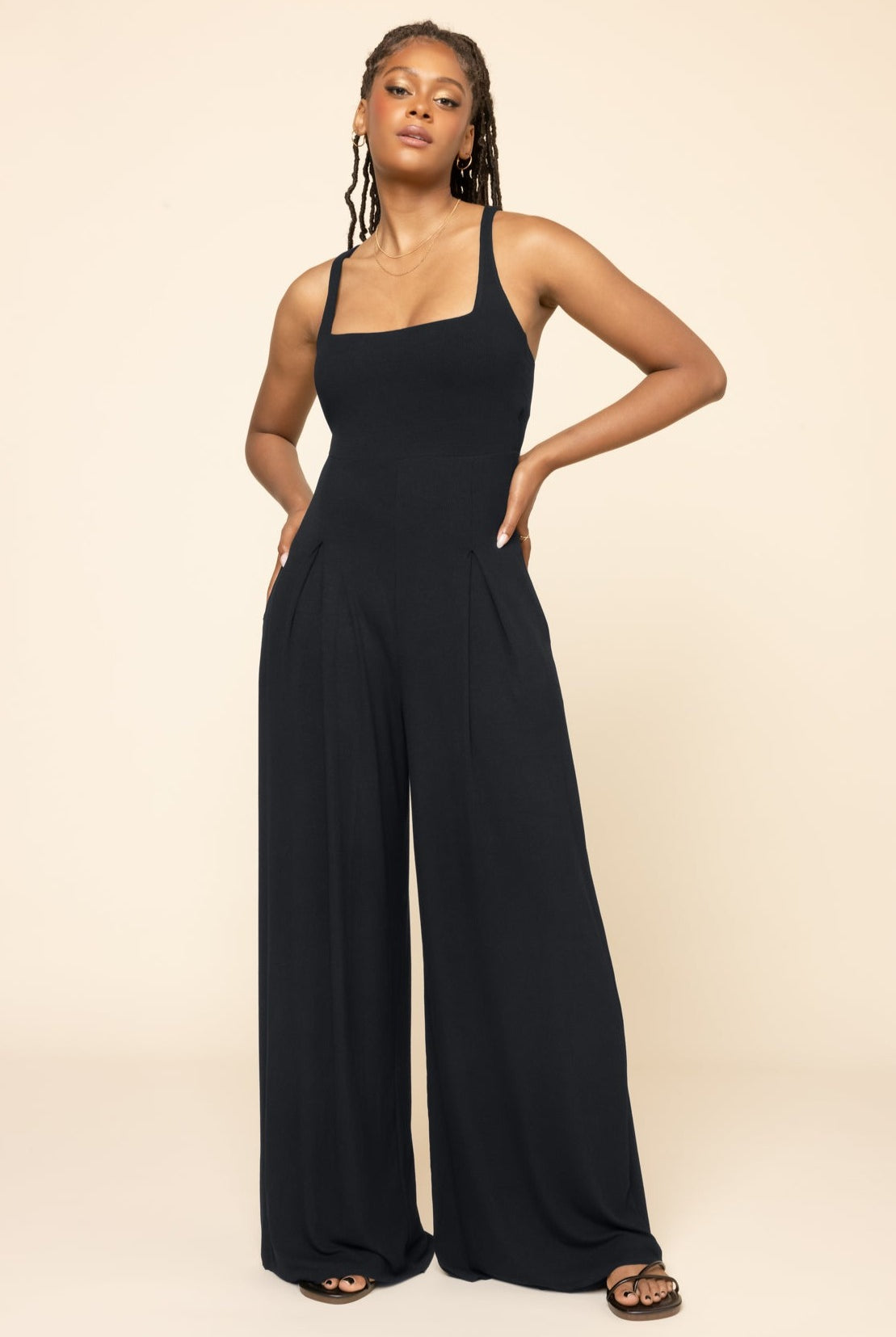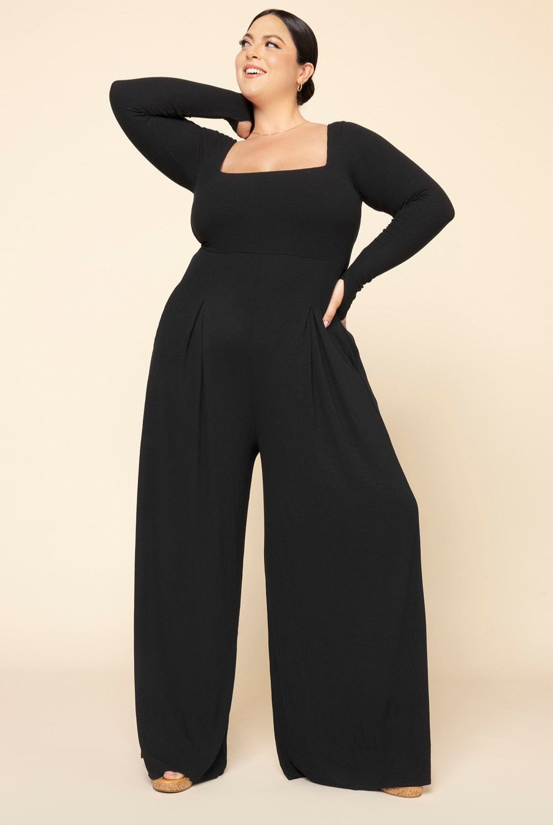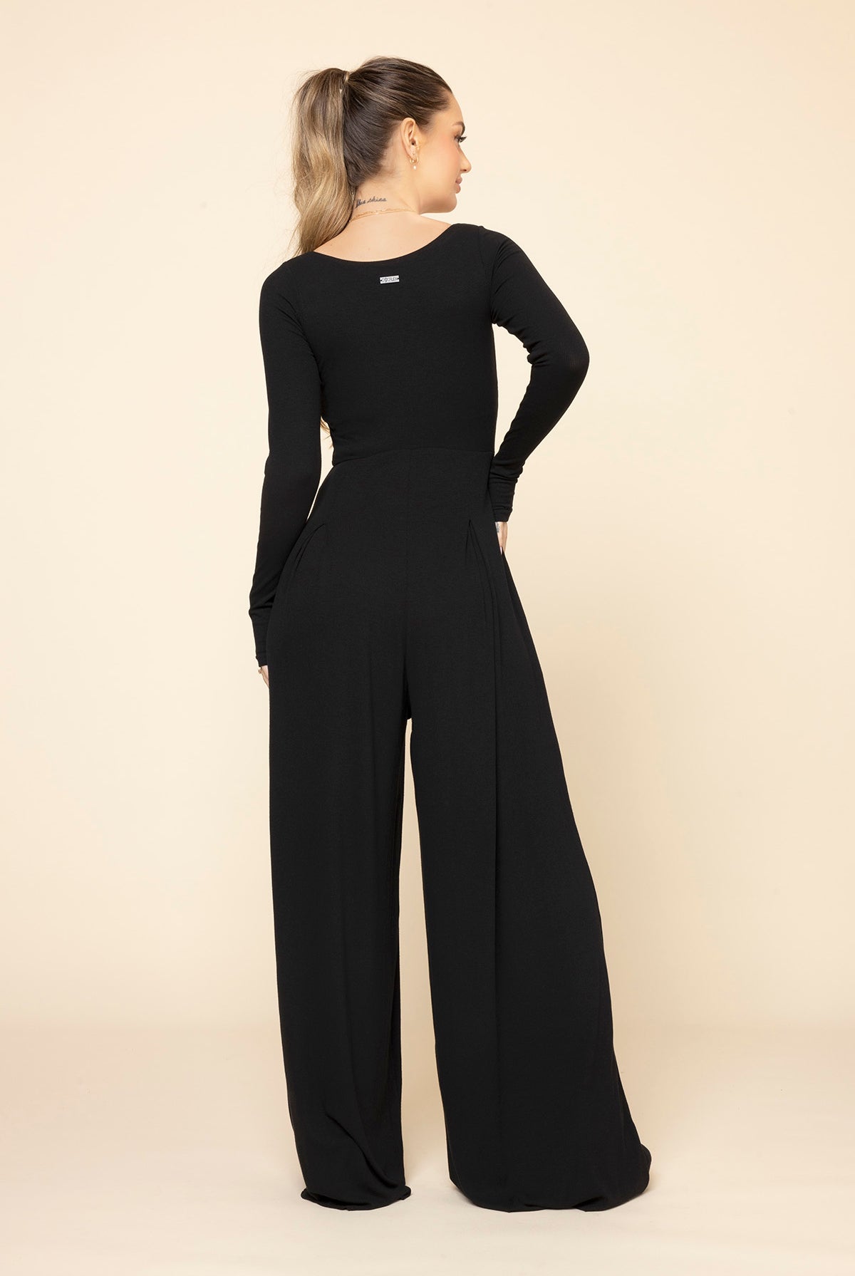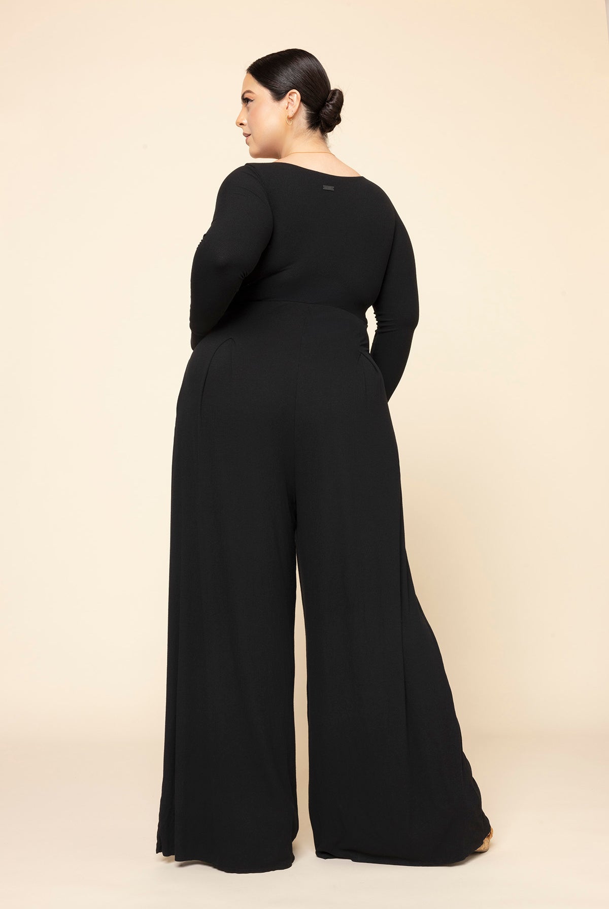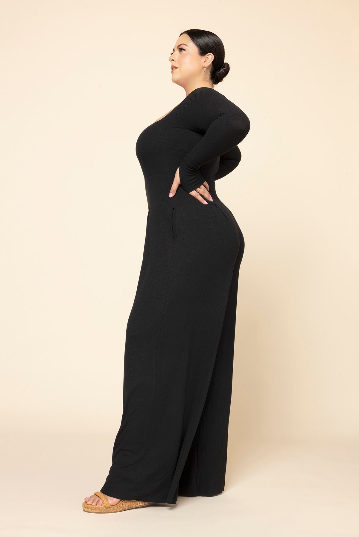 Go With The Flow Long Sleeve Jumpsuit - Black