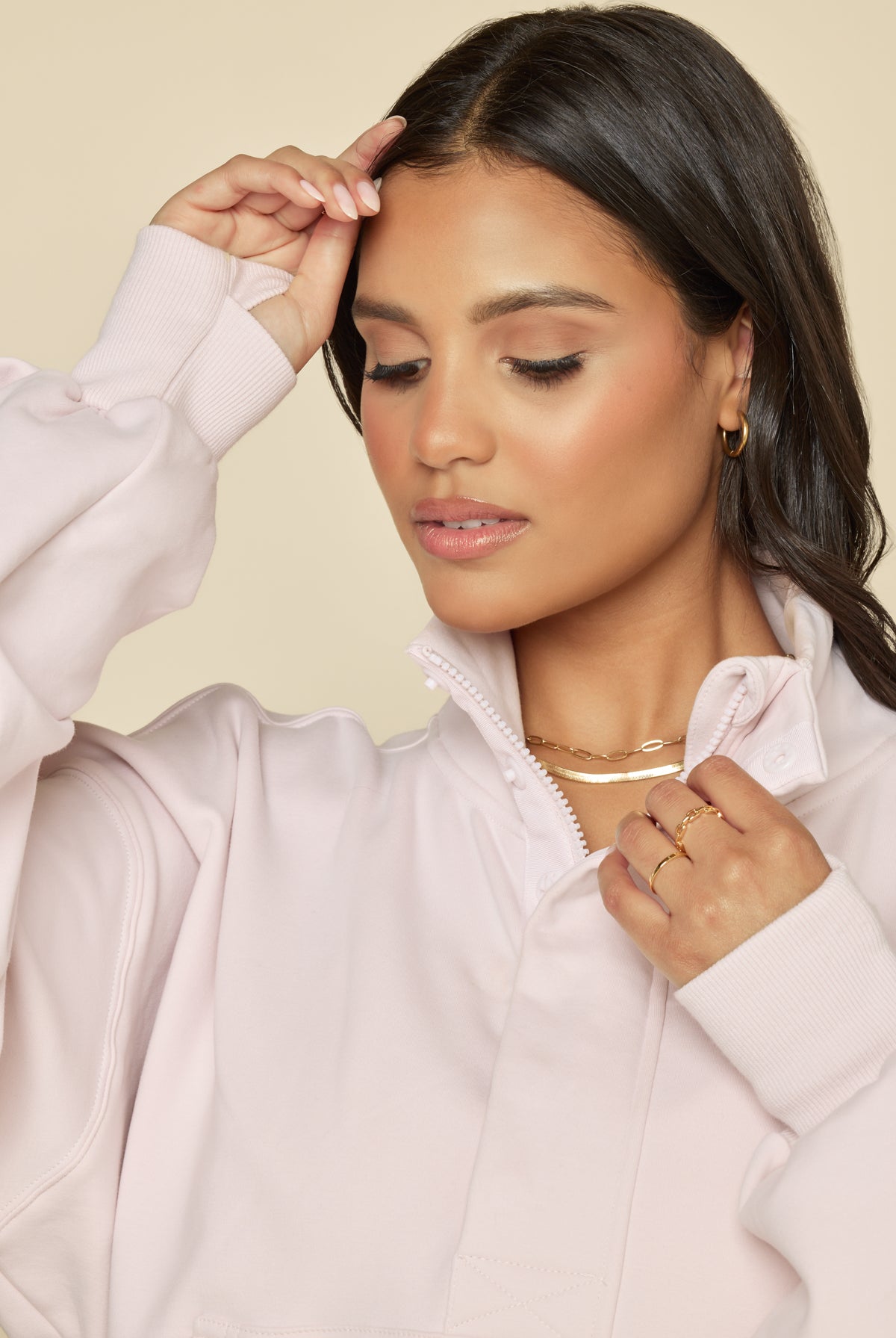 Ooey Gooey Crop Half Zip Sweater - Pink Ice
