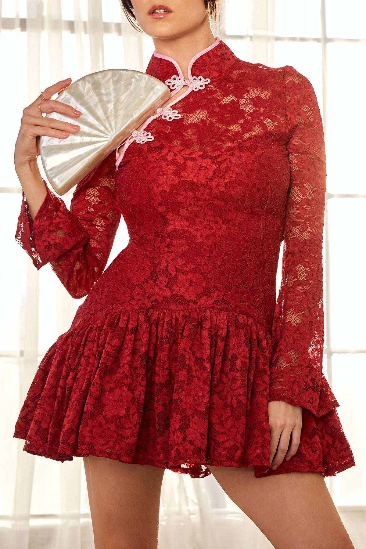 Mandarin Collar Festival Dress - Bon Bon Pink