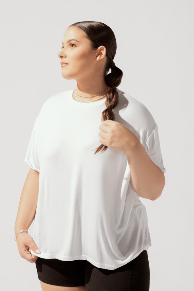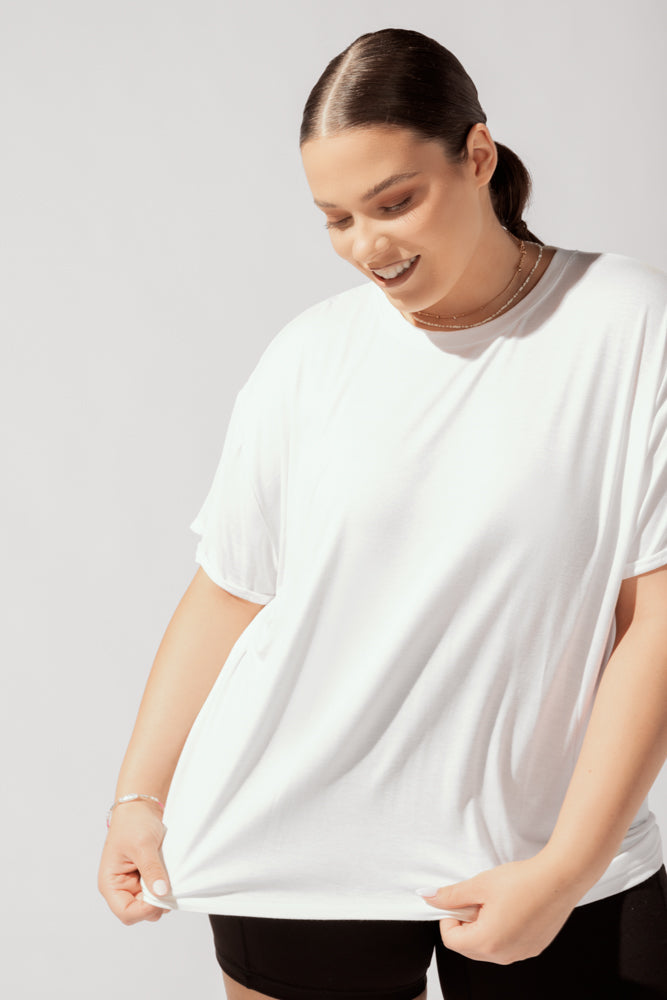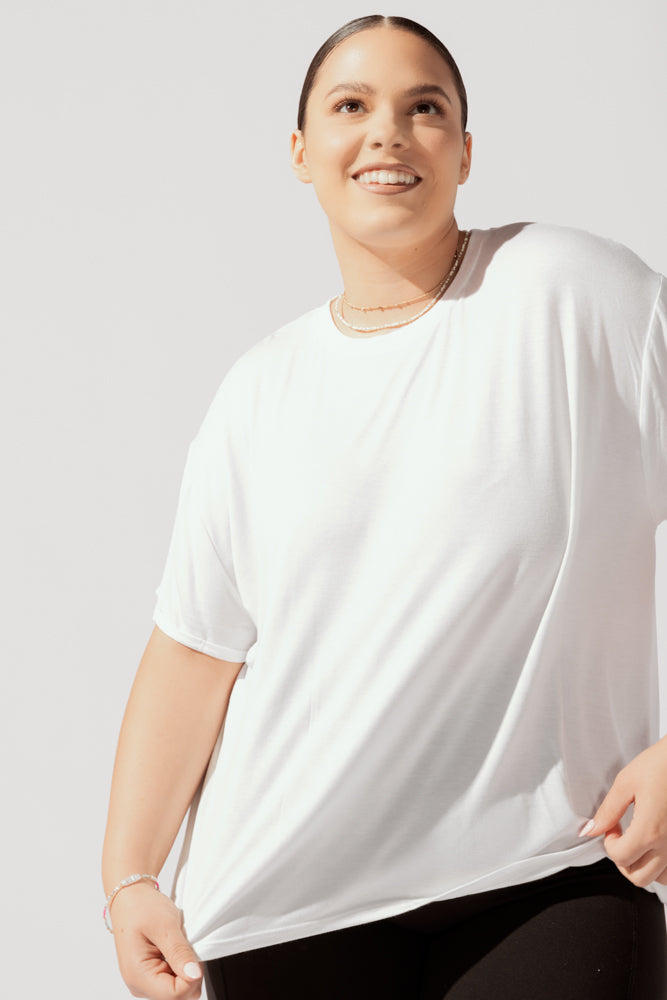 The recipe for designing the goldilocks of all tees: a little bit of length to cover your peach, a boxy fit to flatter your figure, and a dash of bagginess for a comfy fit. Let us reintroduce you to our Perfect Tee’s sister... The Perfect Boyfriend Tee.