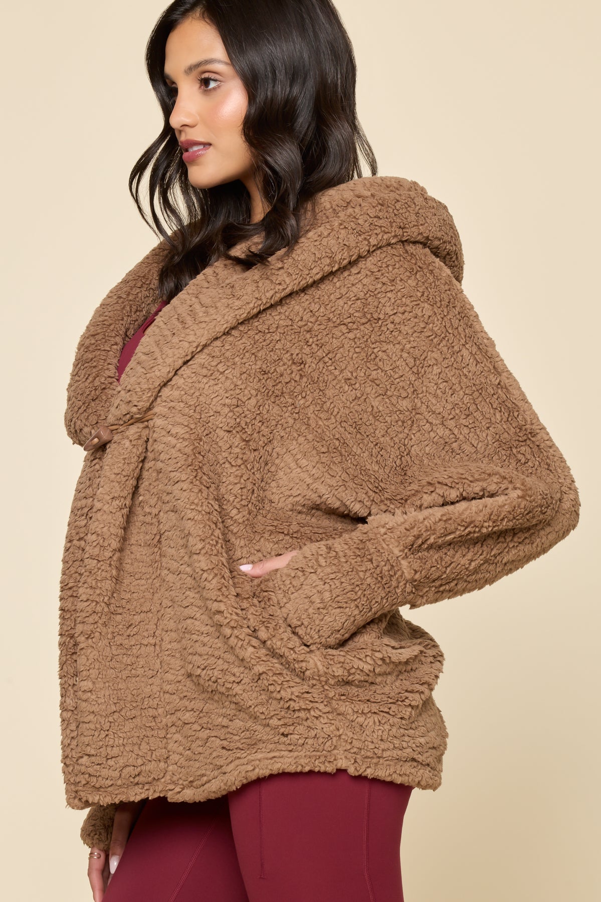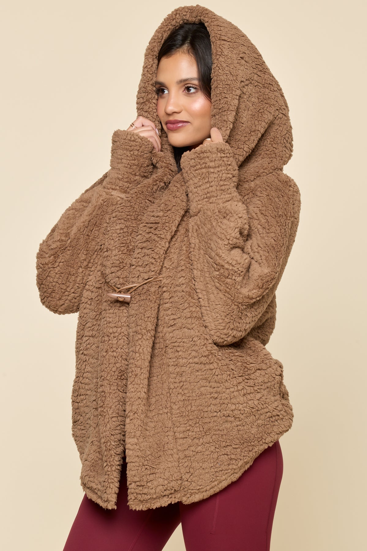 Faux Sherpa Cocoon Coat - Teddy Bear Brown