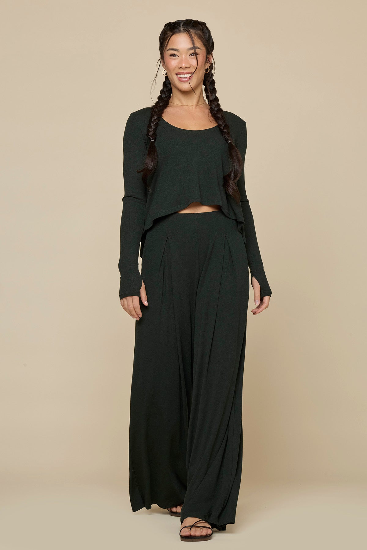 Go With The Flow Long Sleeve Top - Deep Forest