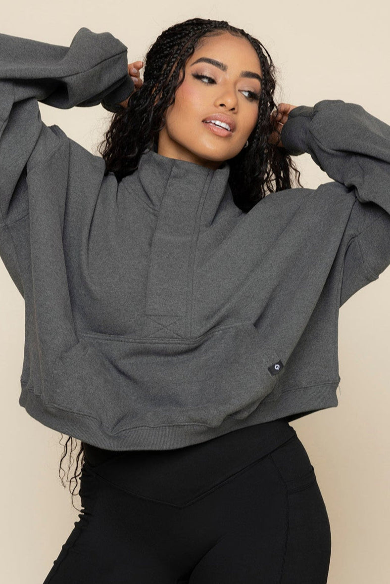Ooey Gooey Crop Half Zip - Charcoal Heather