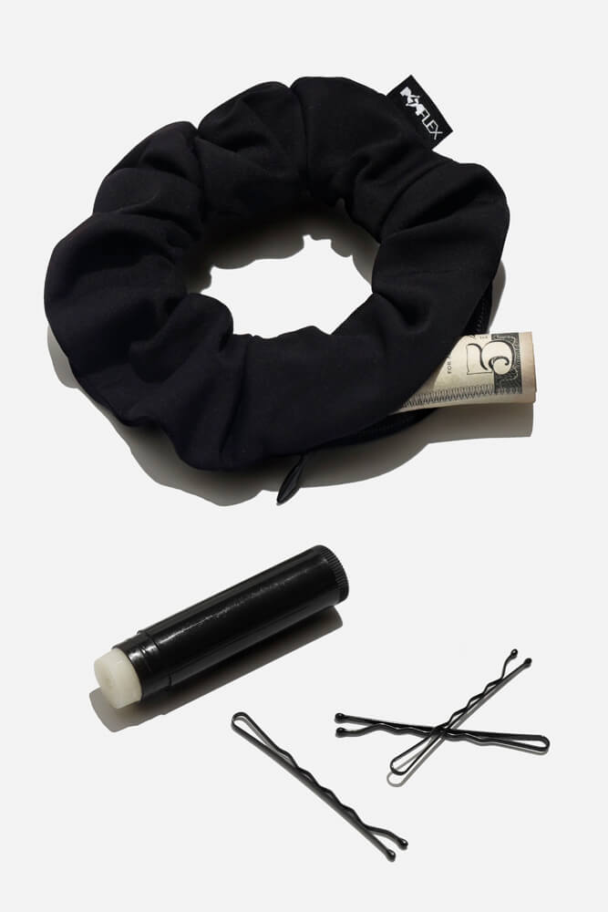 A scrunchie that does more than just tie your hair back. This one holds your necessities, in secret!