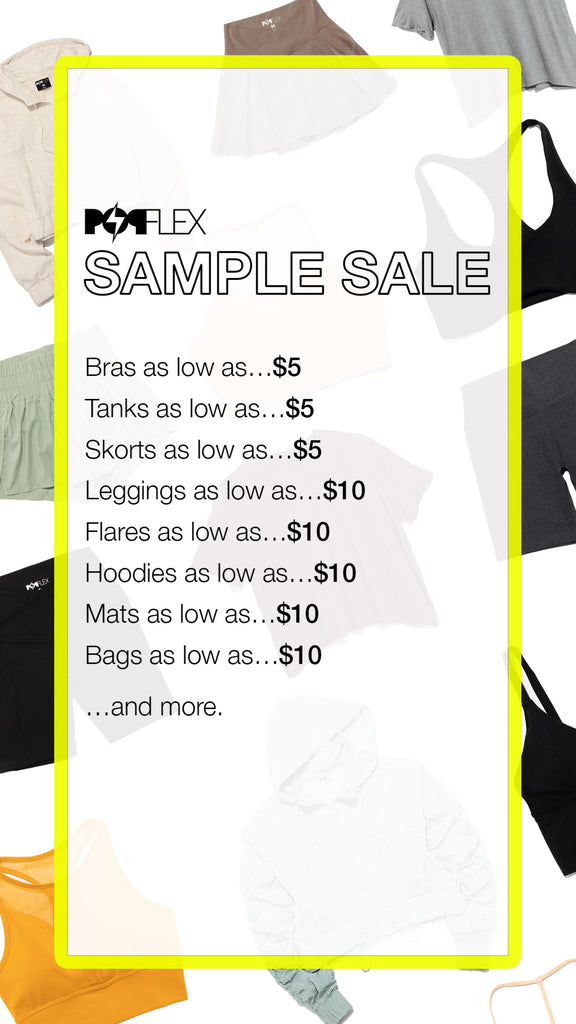 For POPFLEX, it takes around 1 year to design, develop, and produce 1 single style. (For comparison, fast fashion companies like Shein can often rip off a design and get it on their website in a matter of a couple weeks.) During that year we are fitting multiple prototypes on multiple fit models until we get the right fit. When the samples start piling up, instead of getting rid of them, we hold sample sales open to the community where you can buy these our prototypes for crazy low prices! Sign up for our newsletter to know when the next one is.