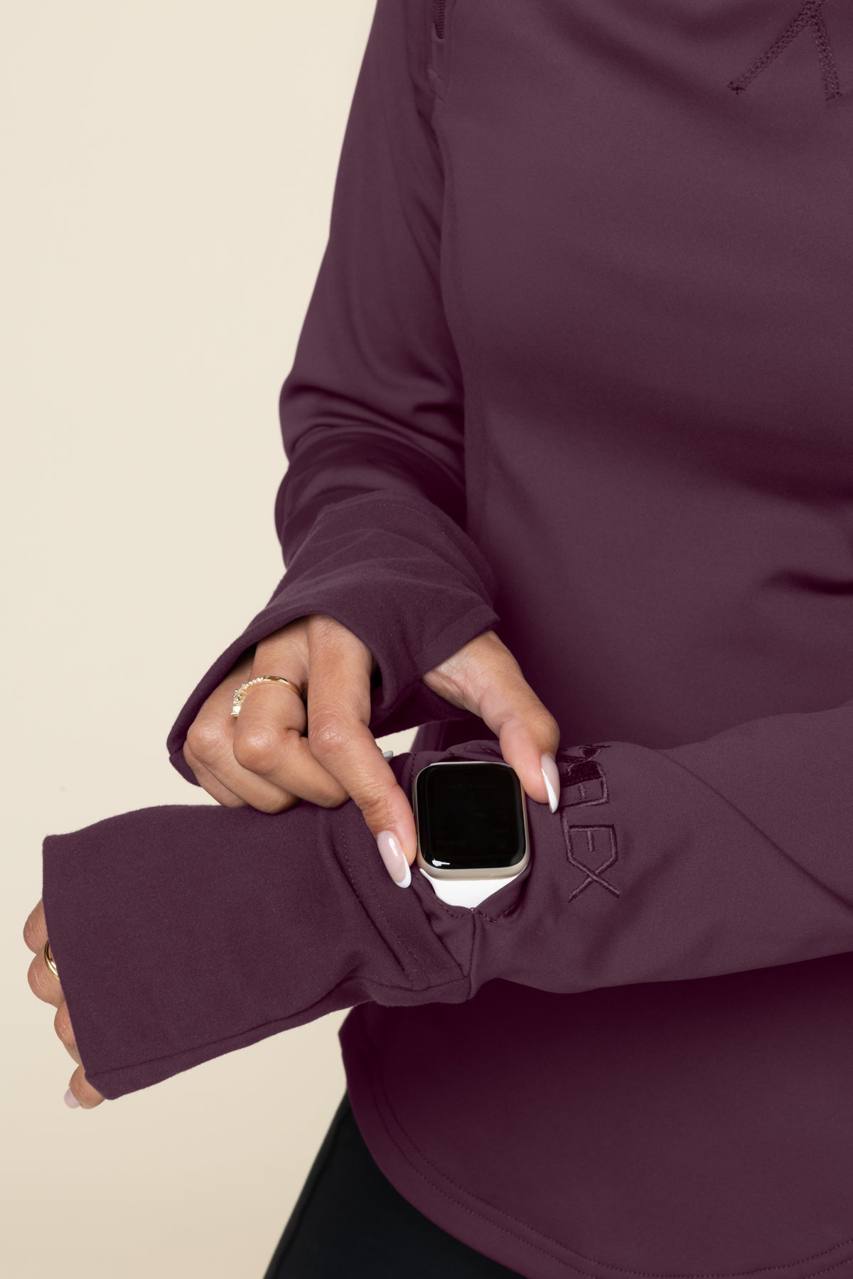 Layering just got easier. Designed with a discreet watch opening on both wrists, this running pullover ensures that you never sacrifice tracking your movement for your ootd again.