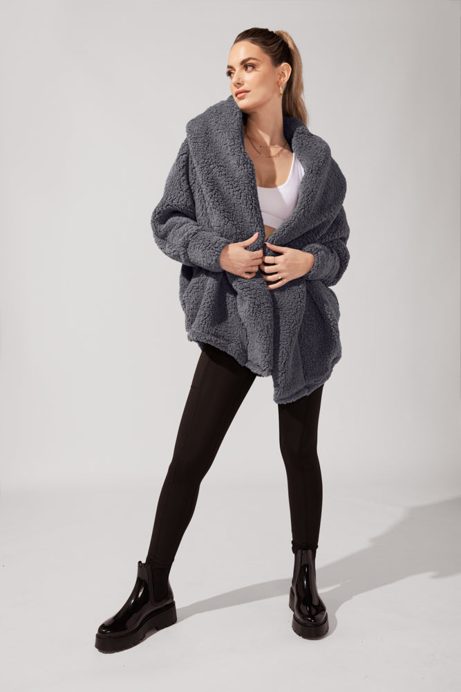 When temps drop, you cocoon up. Designed with a luxe faux sherpa fabric, the Cocoon Coat makes layering a breeze (ironic, right?).