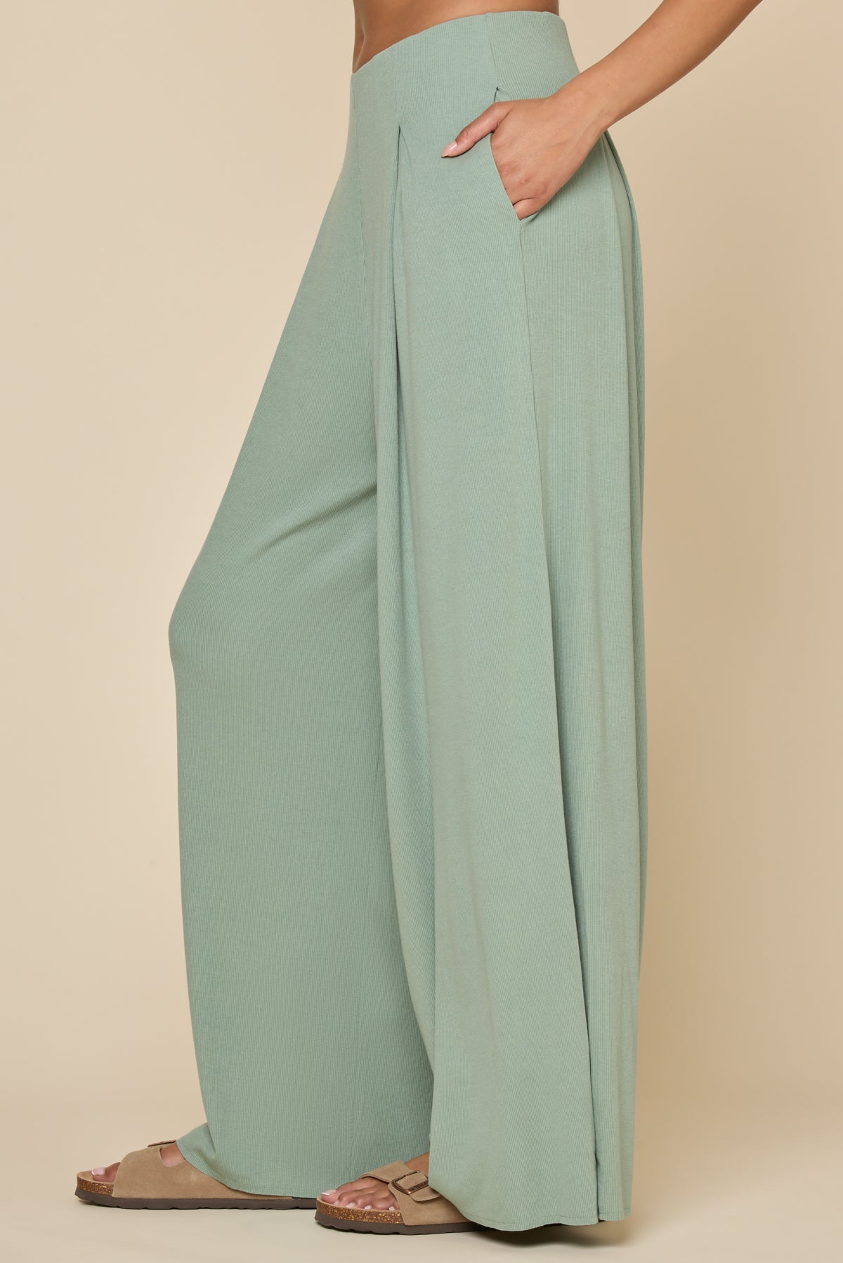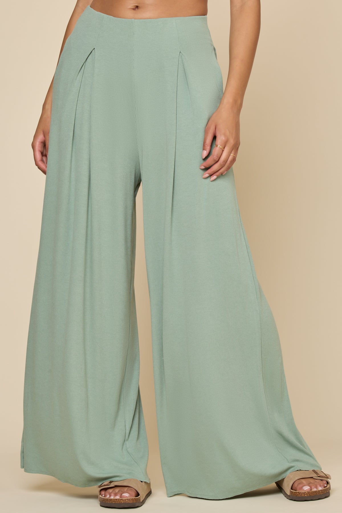Go with the Flow Wide Leg Pant - Evening Moss