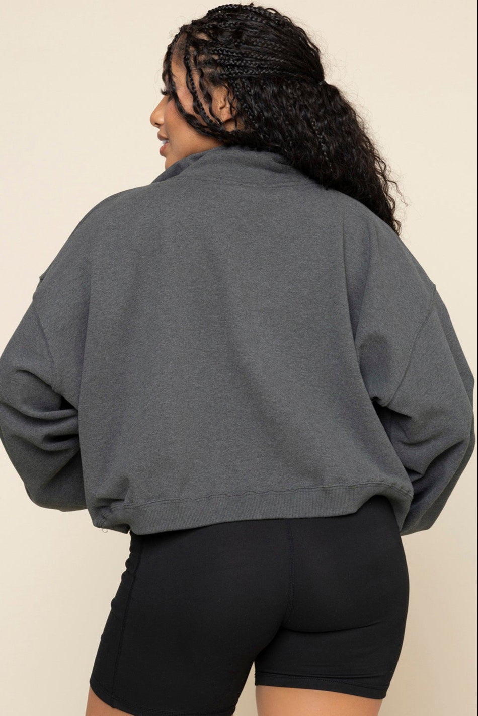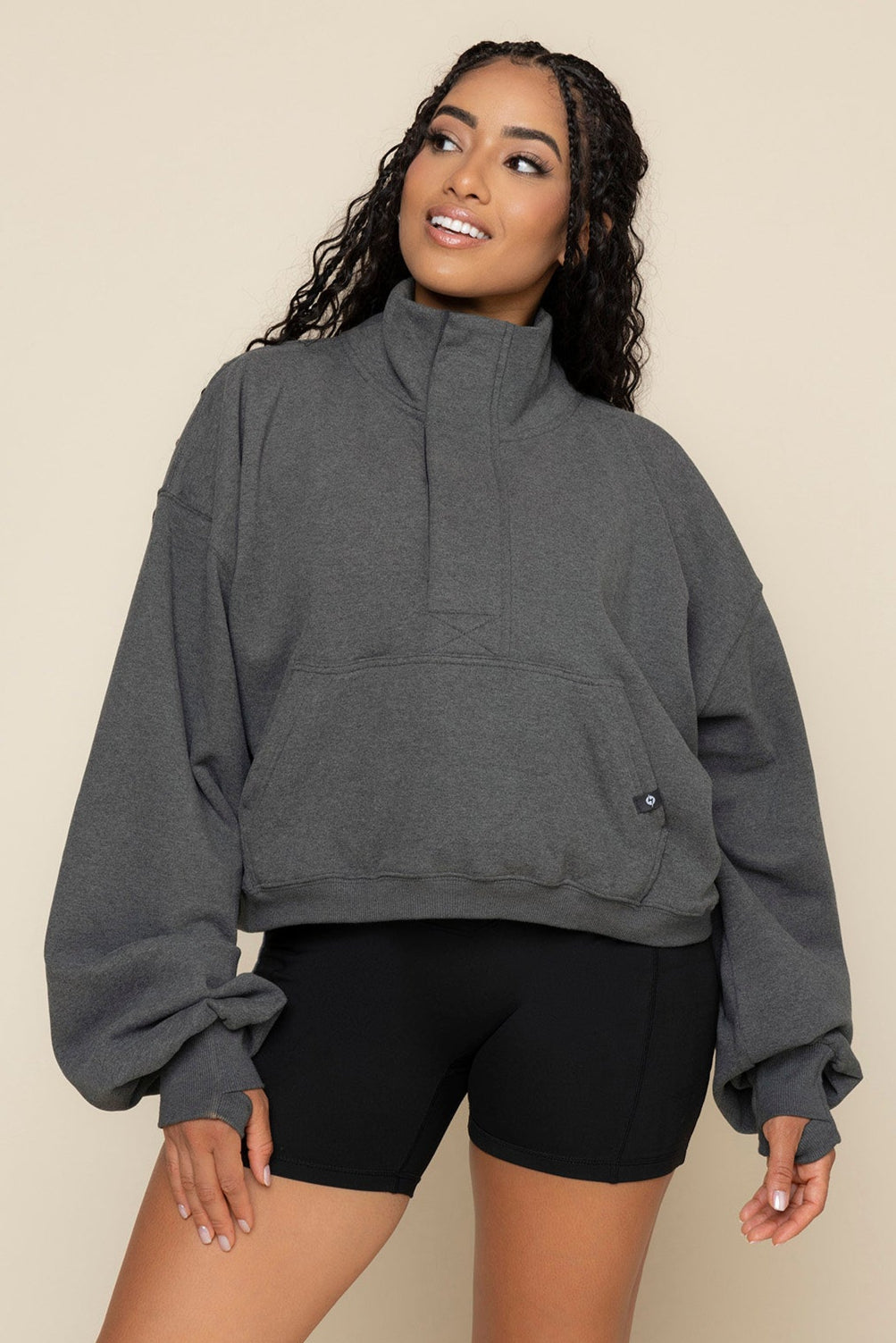 Ooey Gooey Crop Half Zip - Charcoal Heather