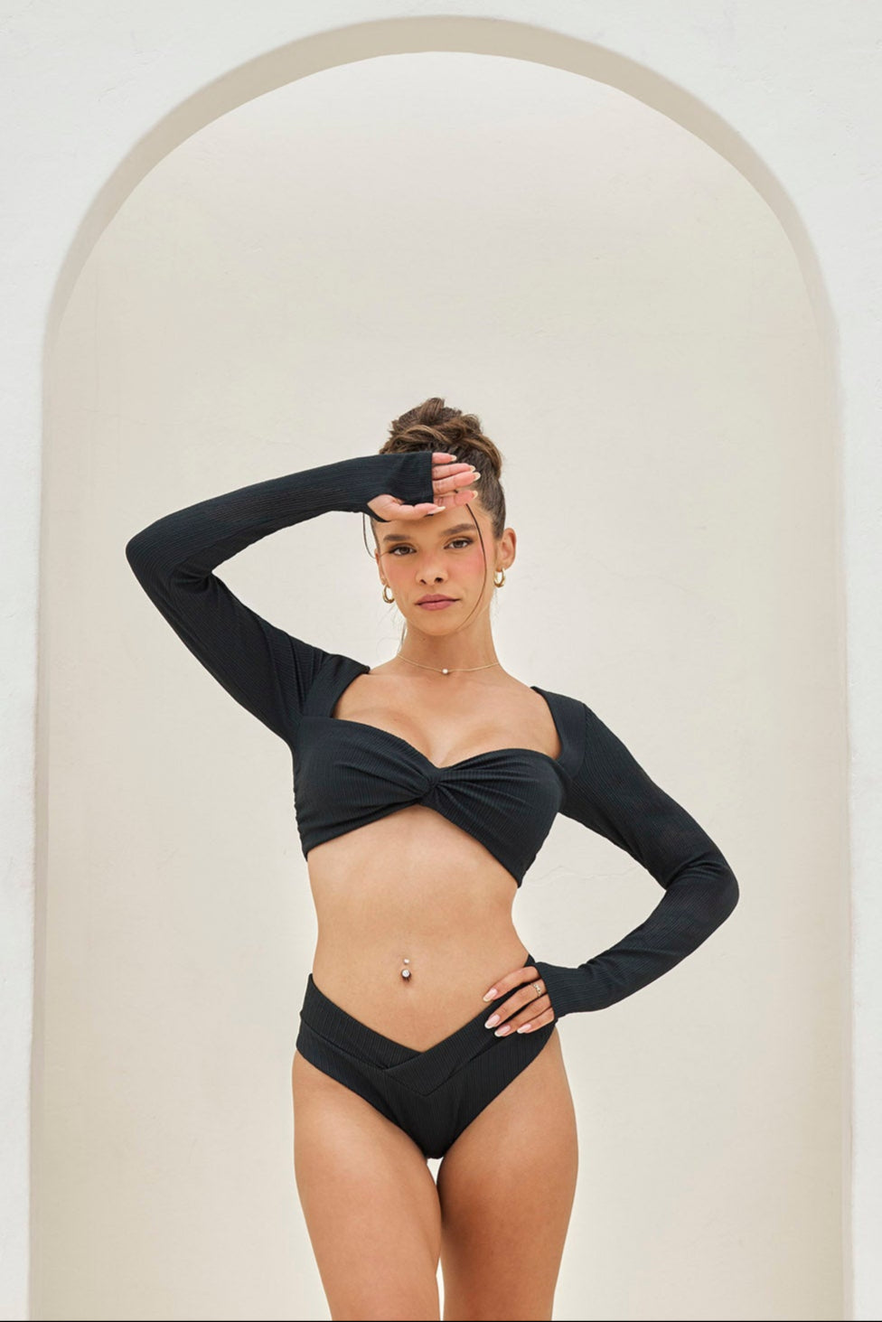 Tranquil Twist Long Sleeve Bikini Top - Black